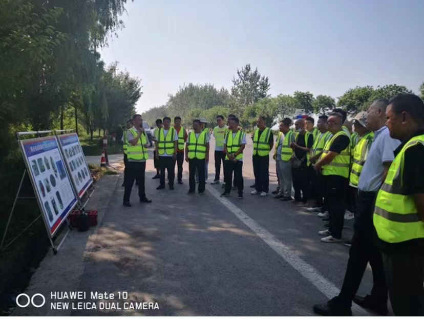 最后,李智勇總工程師介紹了咸陽市地方道路今年的預(yù)防性養(yǎng)護中積極推廣精細化碎石表處技術(shù),借助8月10日市農(nóng)村公路事業(yè)服務(wù)中心組織全市縣區(qū)交通運輸局及農(nóng)村公路管理單位在我公司淳化縣G211潤鎮(zhèn)段精細化碎石表處施工現(xiàn)場召開現(xiàn)場交流會的契機,希望各分公司、拌合站立即行動起來,利用當前的大好時機,檢查和調(diào)整改性乳化瀝青生產(chǎn)設(shè)備,做好各項準備工作,組織試生產(chǎn),發(fā)揮公司技術(shù)設(shè)備優(yōu)勢,主動聯(lián)系各縣區(qū)地方道路管理部門,搶抓機遇,開拓市場,占領(lǐng)市場,為咸陽市農(nóng)村公路發(fā)展貢獻公司力量。